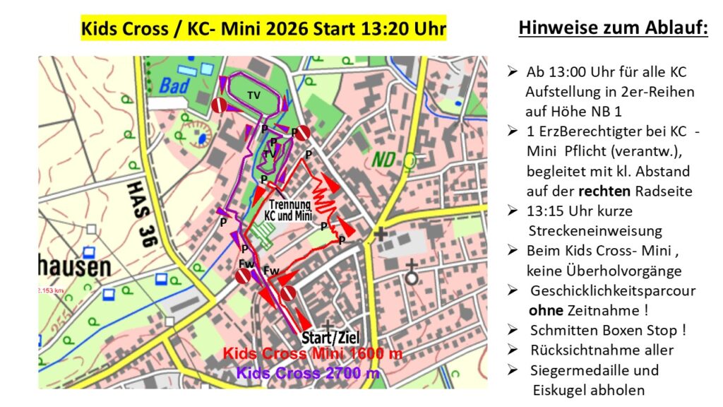 | Wettkampfbesprechung | Samstag, 09. Mai 2026 13:45 Uhr , Innenstadt Hofheim . Teilnahme verpflichtend! Hinweis: Die Radstrecke ist nicht gesperrt! Die Bestimmungen der Straßenverkehrsordnung sind einzuhalten! Es besteht Helmpflicht! | |